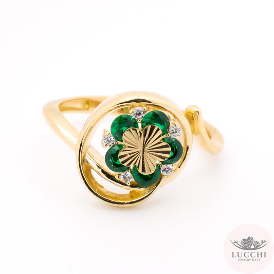 Statement x Floral x Bypass x Halo Ring - Emerald Green - 14k