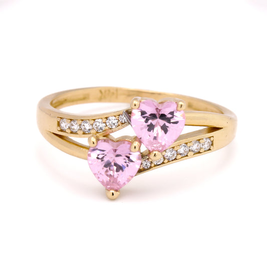 Two Shooting Hearts - Promise x Forever Ring - Baby Pink Rose - 14k