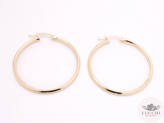 40mm Chevron Classic Hoop Earrings - Glass Blasted - 14k