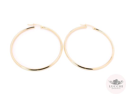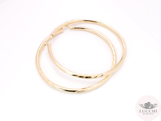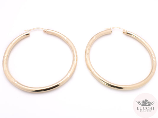 55mm Chevron Classic Hoop Earrings - Glass Blasted - 14k