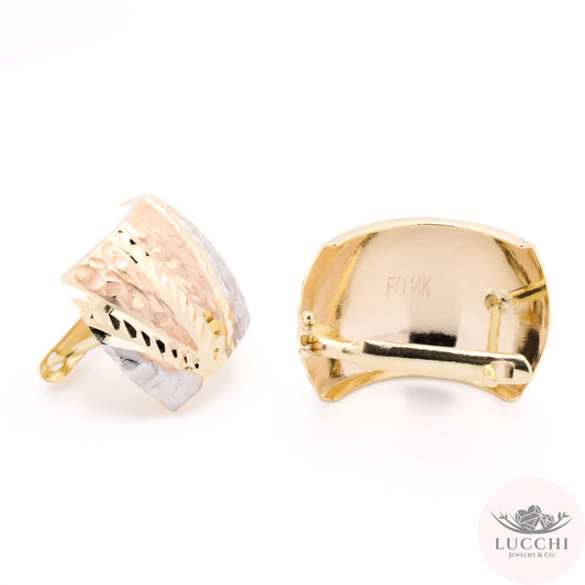 Neo Art Deco Tri Color Omega Earrings - Style 3 - 14k
