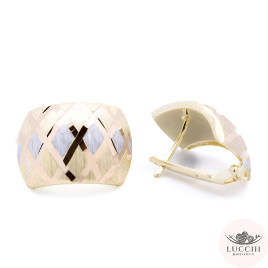 Neo Art Deco Tri Color Omega Earrings - Style 2 - 14k