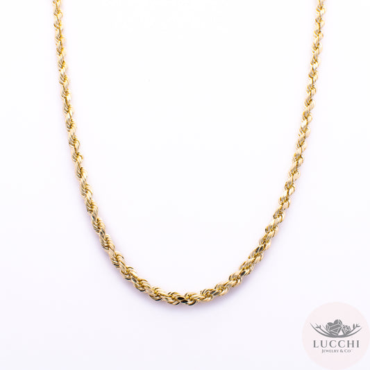 22" Figaro Tri Gold Chain Necklace - Star Engraved - 5mm - 14k