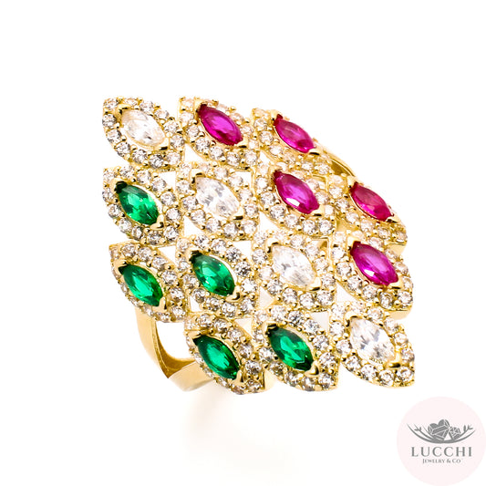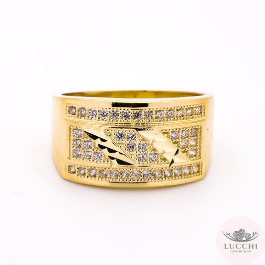 Contemporary Strike Ring - White - Diamond Cuts - 14k