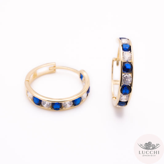 Rainbow Huggies Earrings - Emerald Cuts- 14k