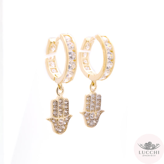 Hamsa Hand Huggies Earrings - White - 14k