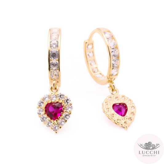 Heart Drop Halo Huggies Earrings - 14k