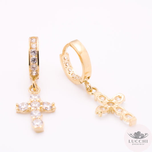 Religious Cross Huggies Earrings - 2.75mm - 14k