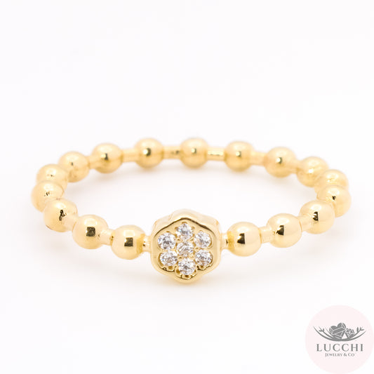 Halo x Floral x Trilogy CZ Ring - White - 14k