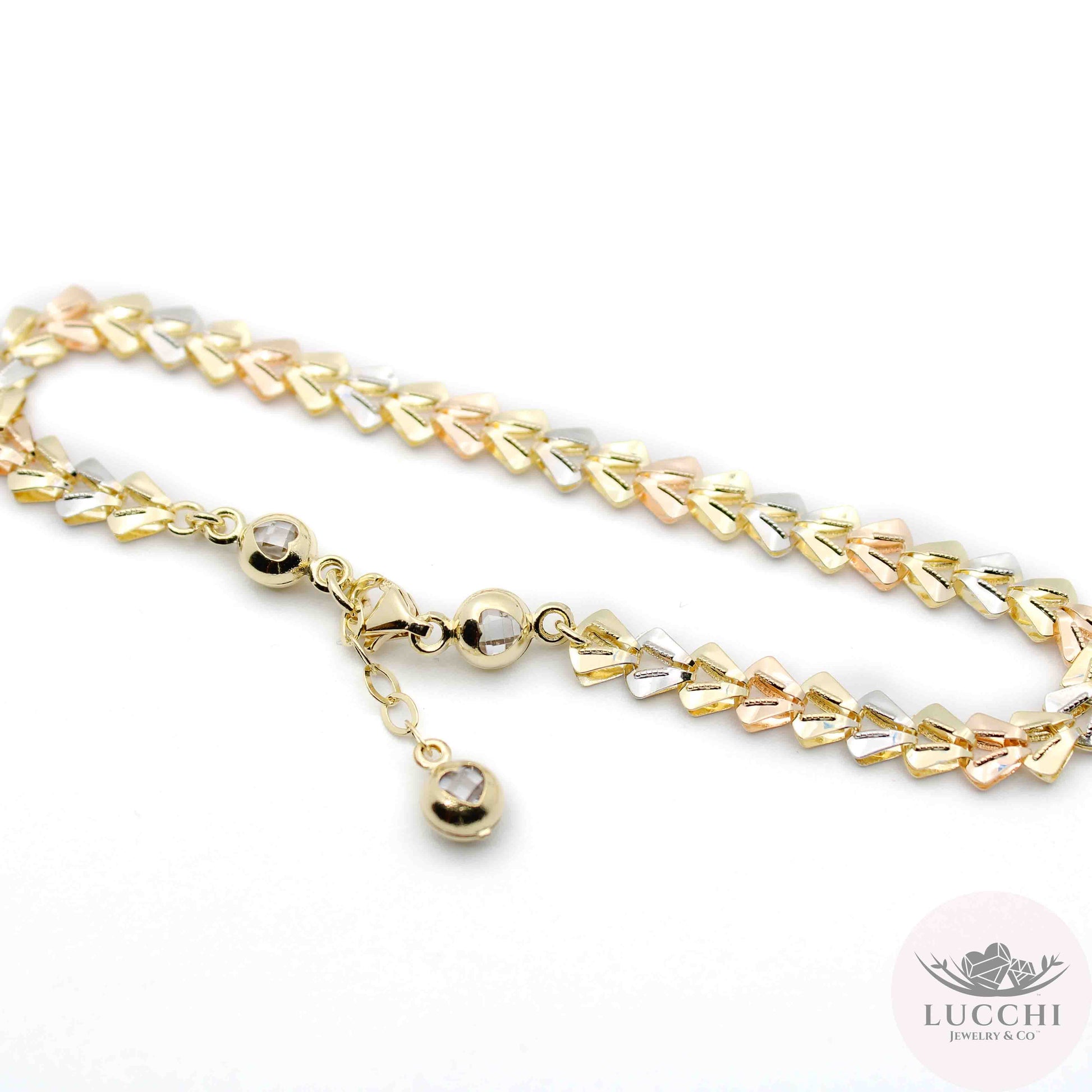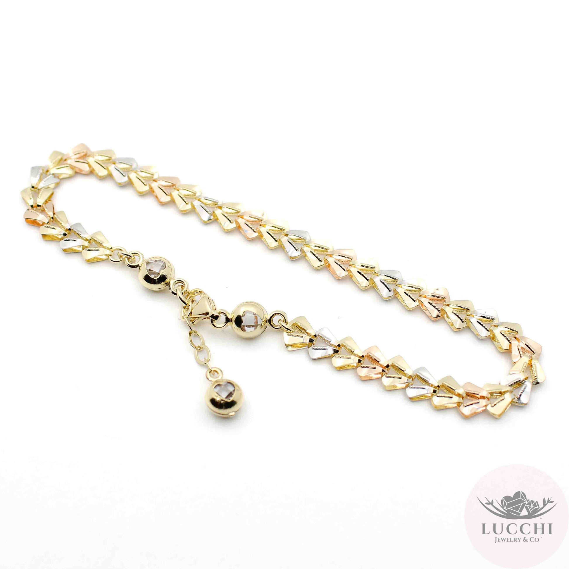14k Foxtail Heart Tri - Color Bracelet - 6mm