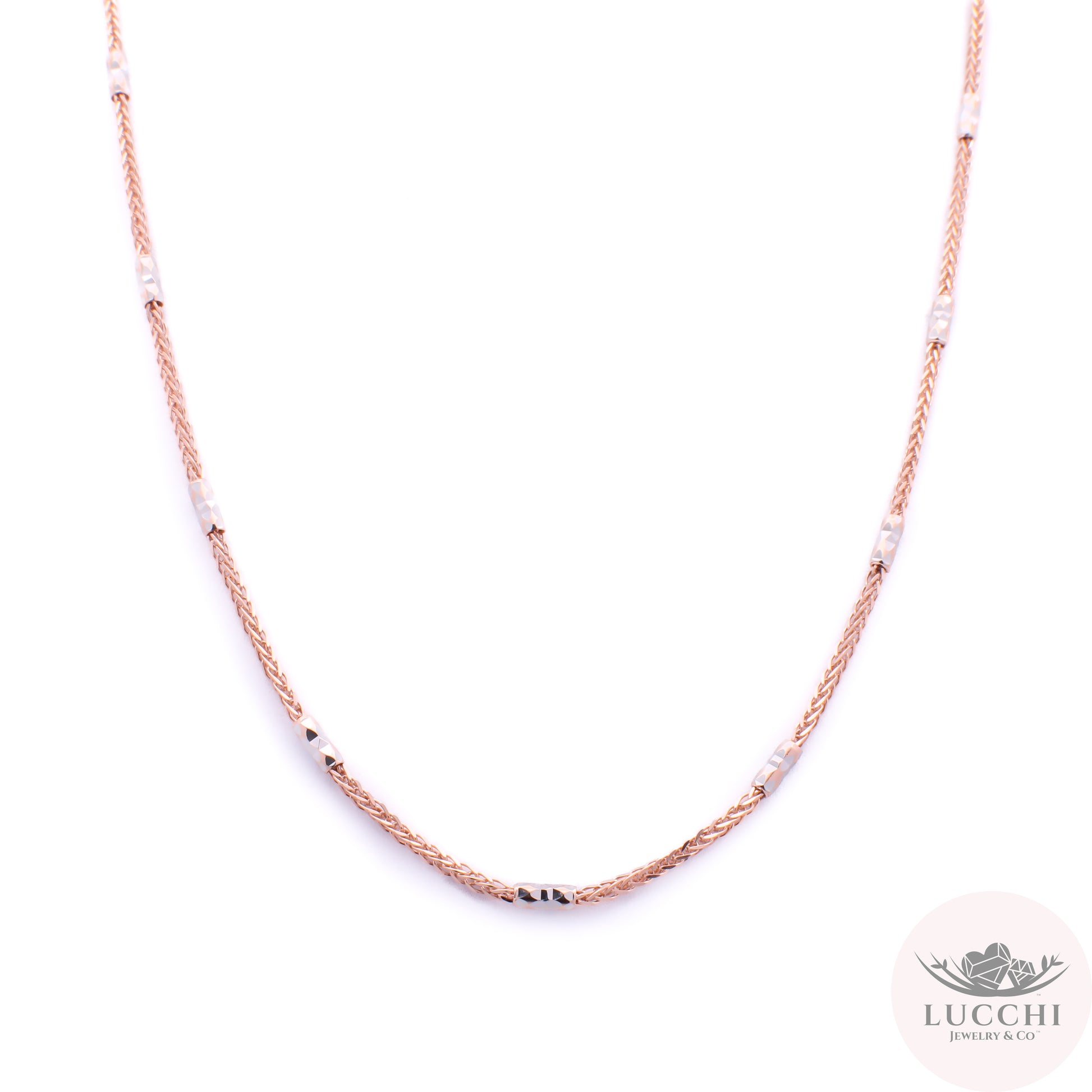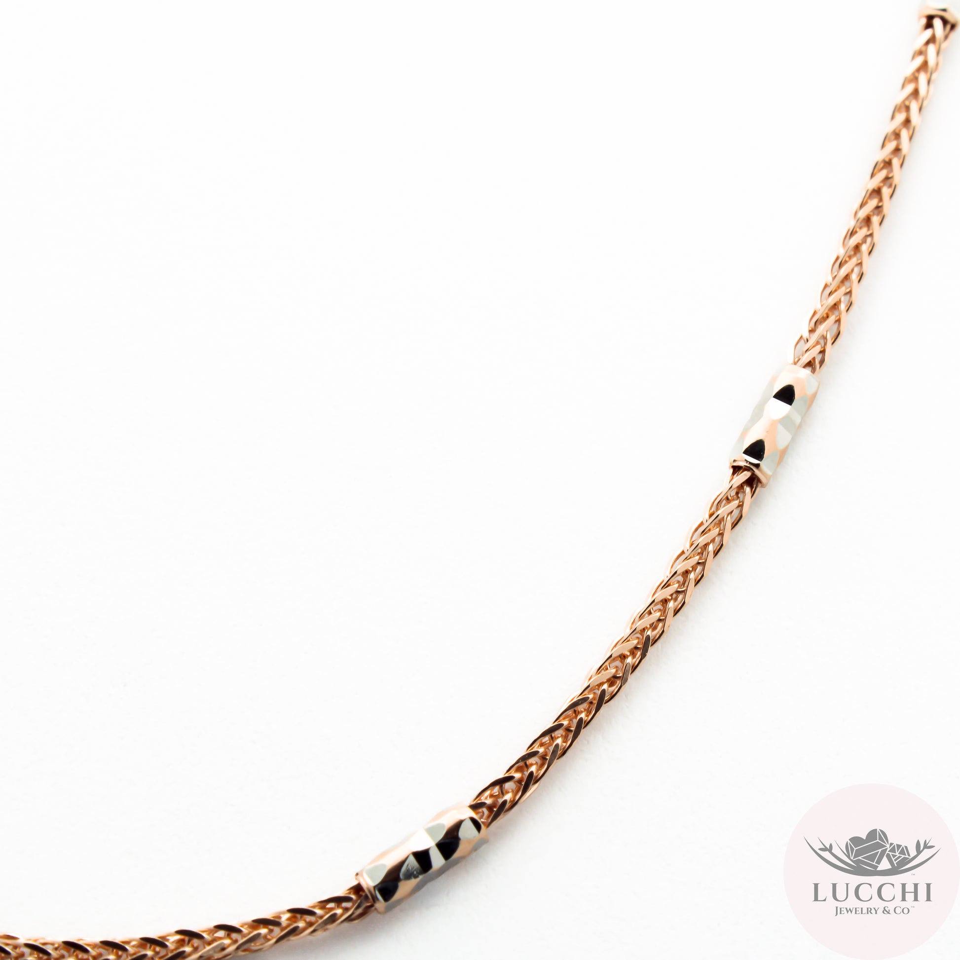 18" Espiga Wheat Station Chain Necklace - Rose Gold - 2mm - 14k