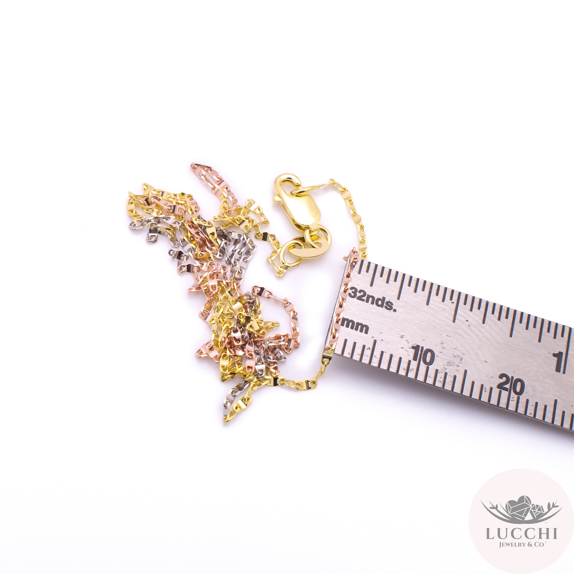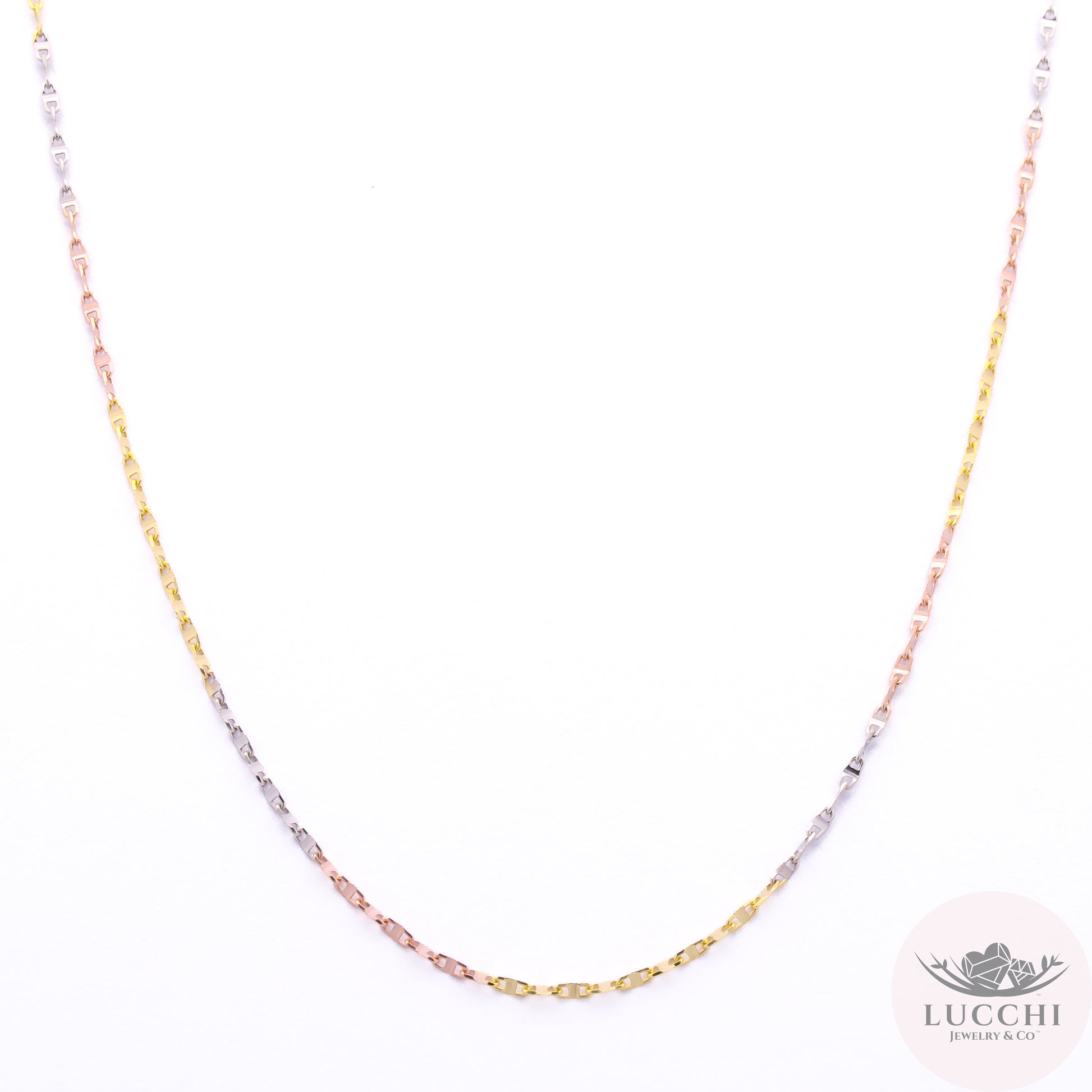 18" Mariner Tri Gold Rainbow Chain Necklace - 1mm - 14k