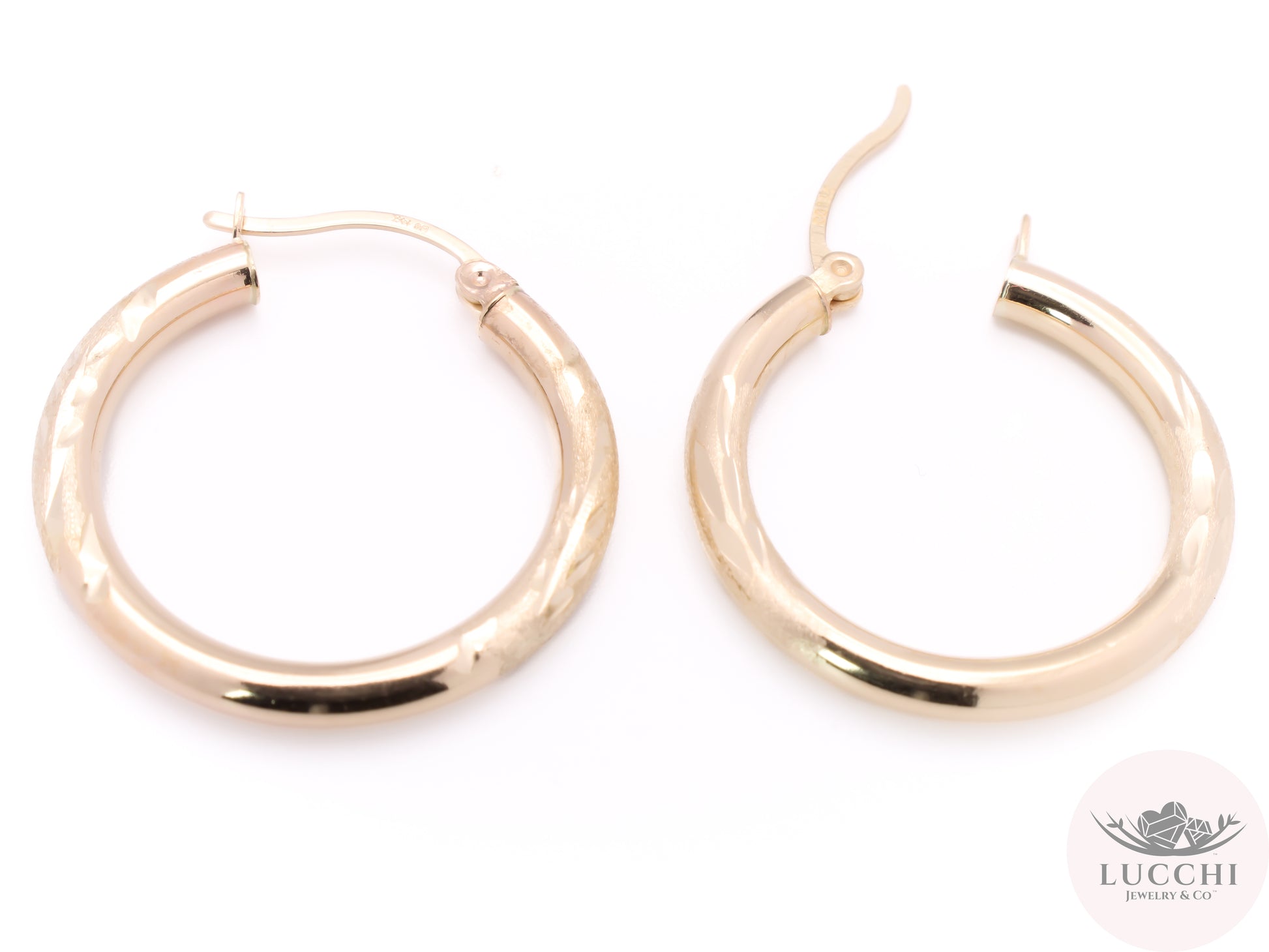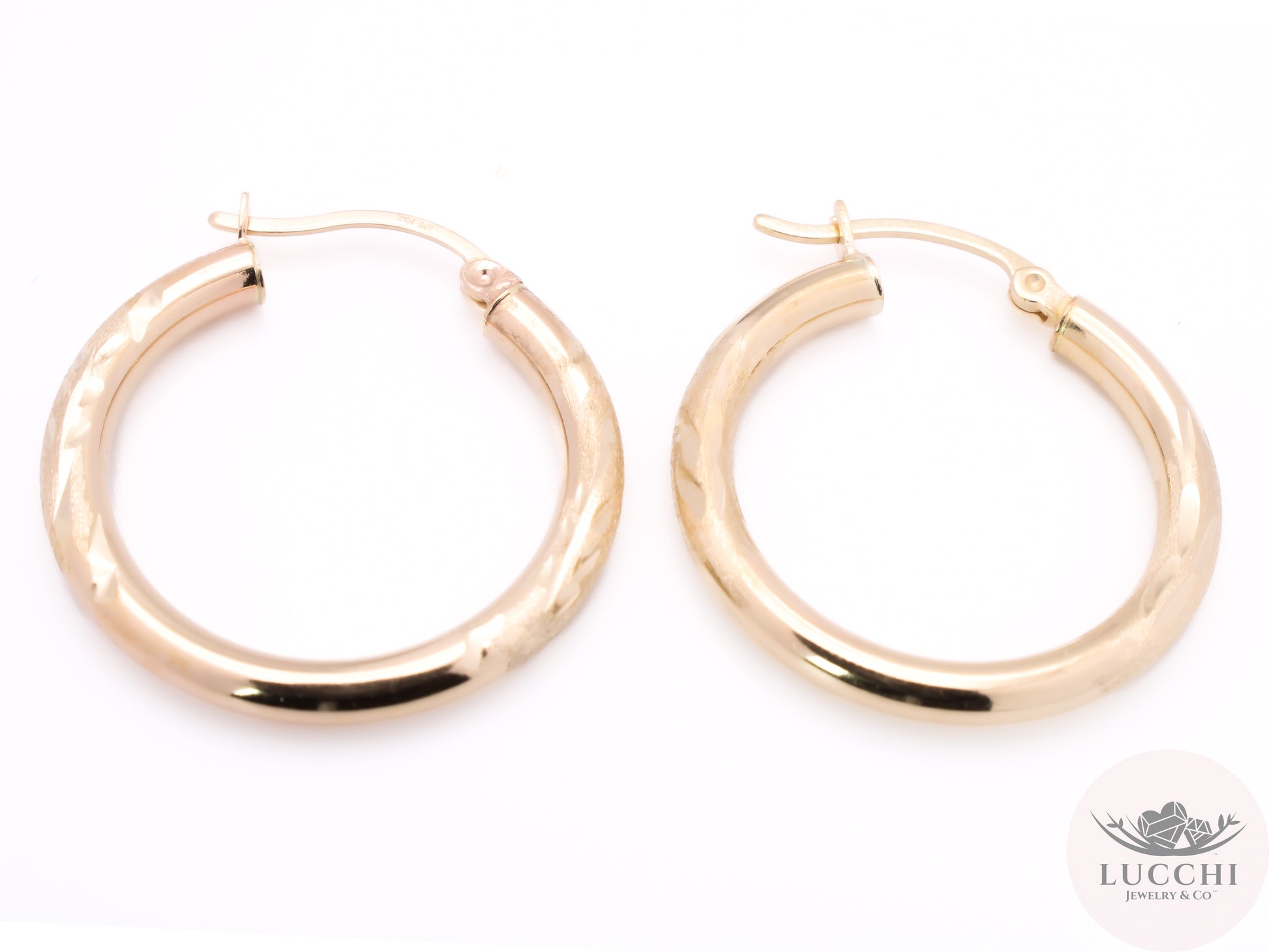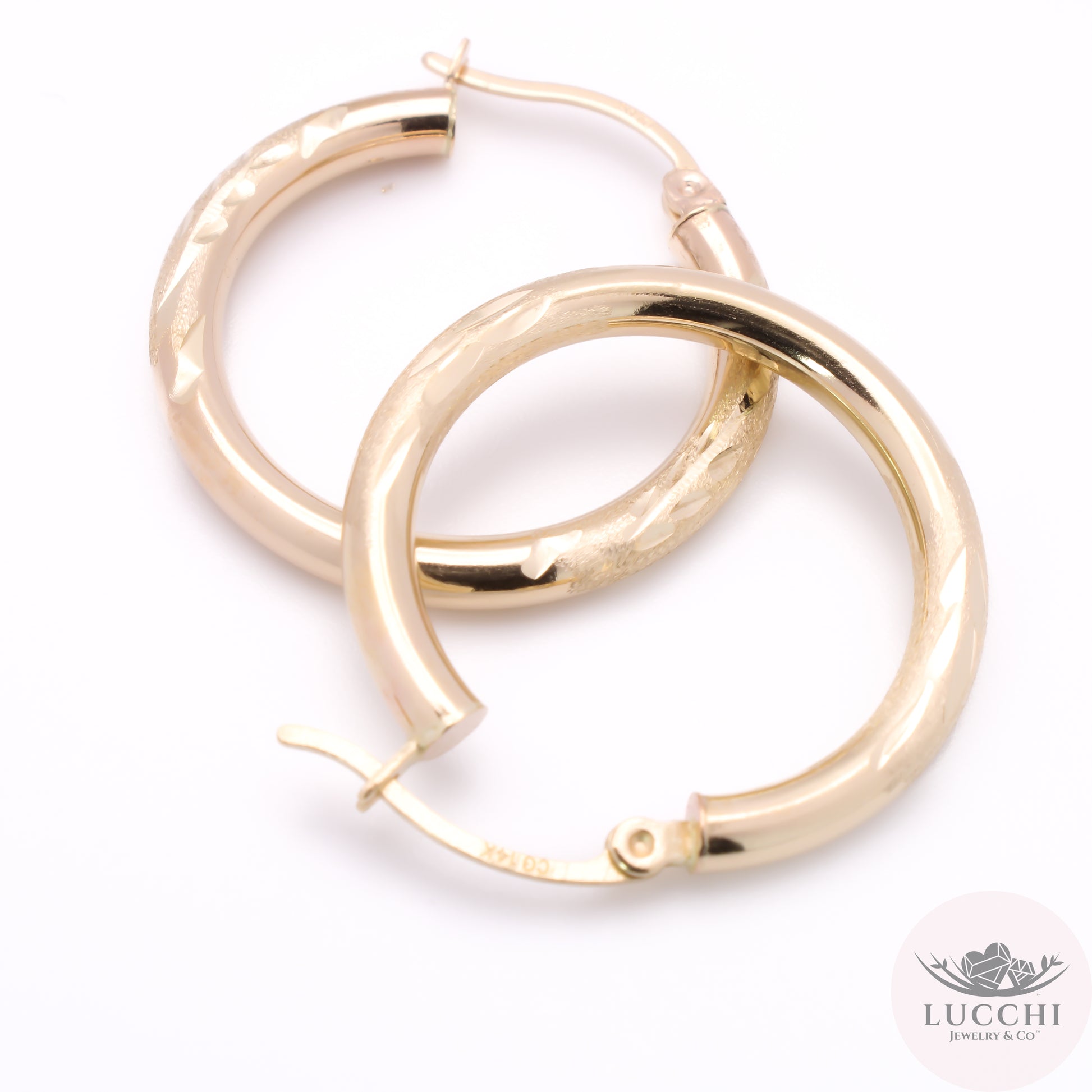 20mm Chevron Classic Hoop Earrings - Glass Blasted - 14k