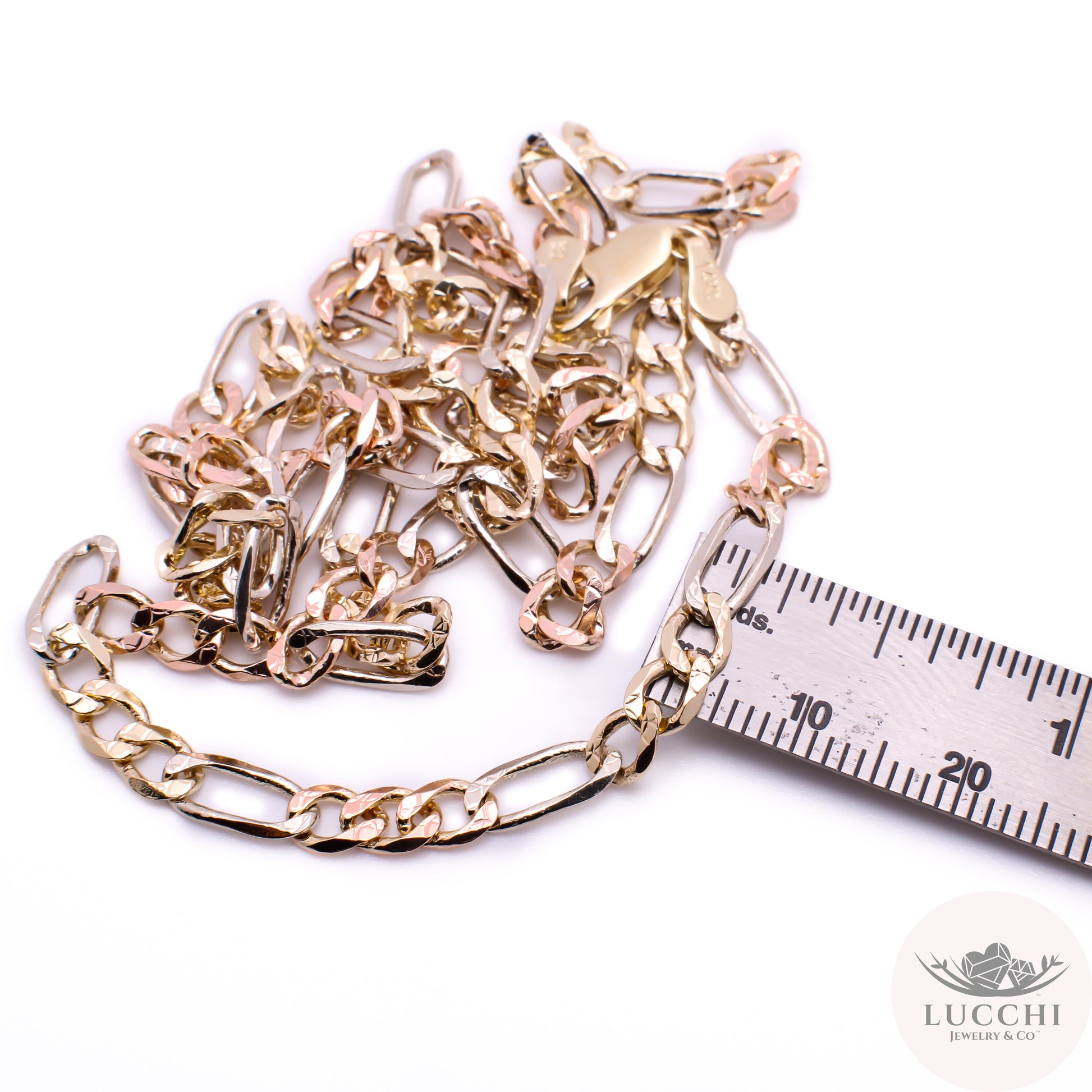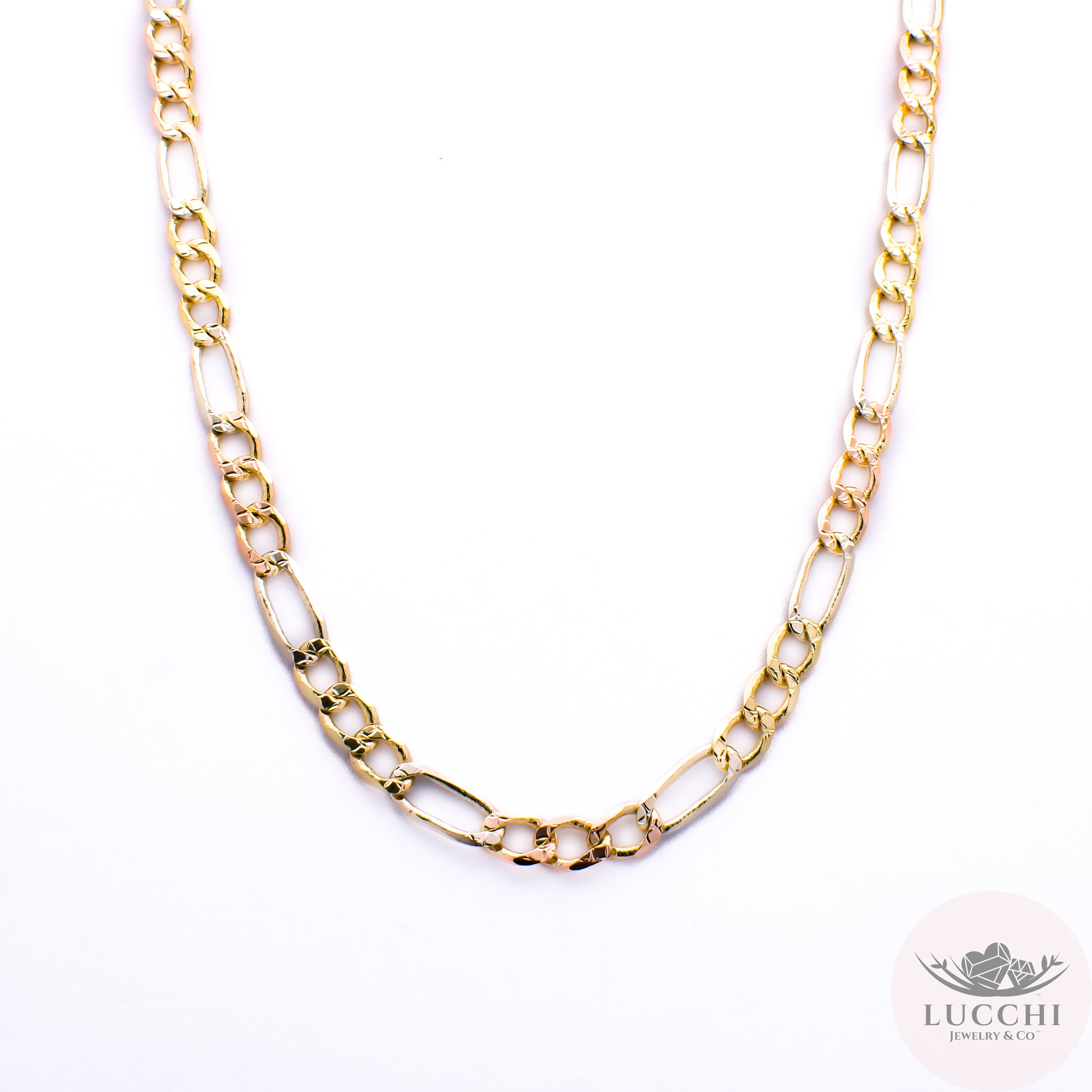 22" Figaro Tri Gold Chain Necklace - Star Engraved - 5mm - 14k