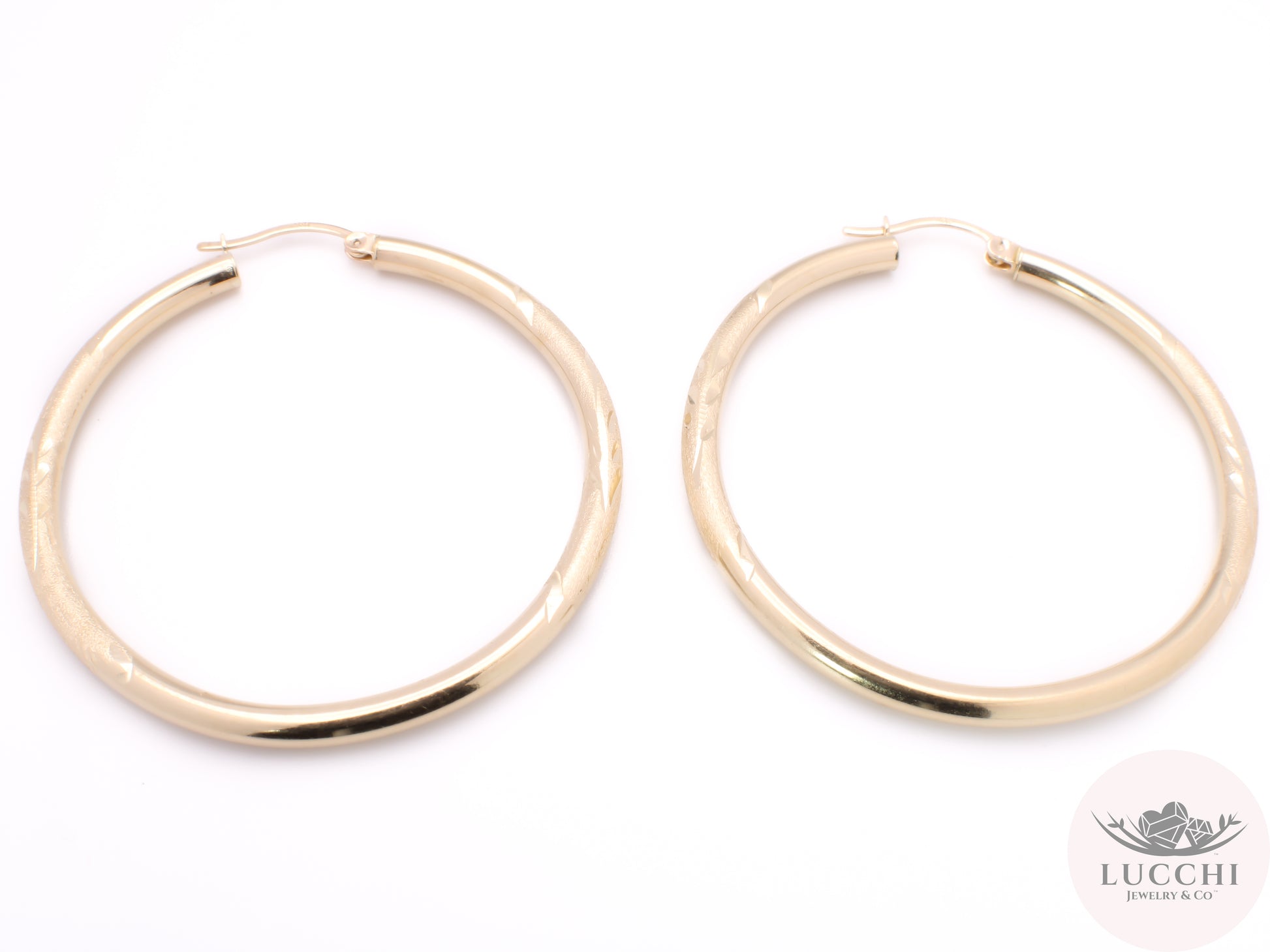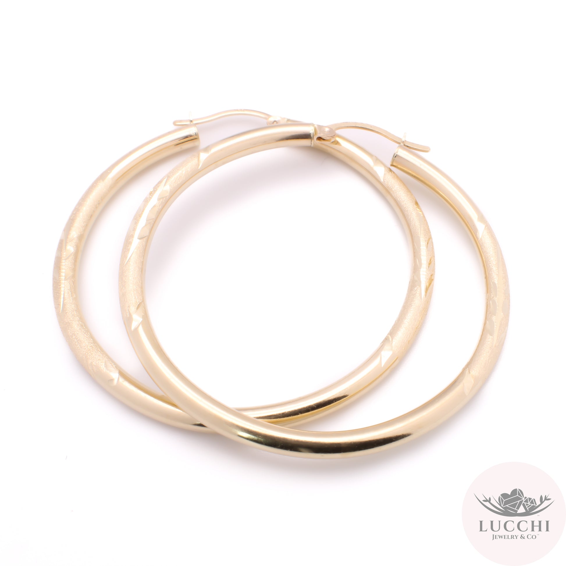40mm Chevron Classic Hoop Earrings - Glass Blasted - 14k