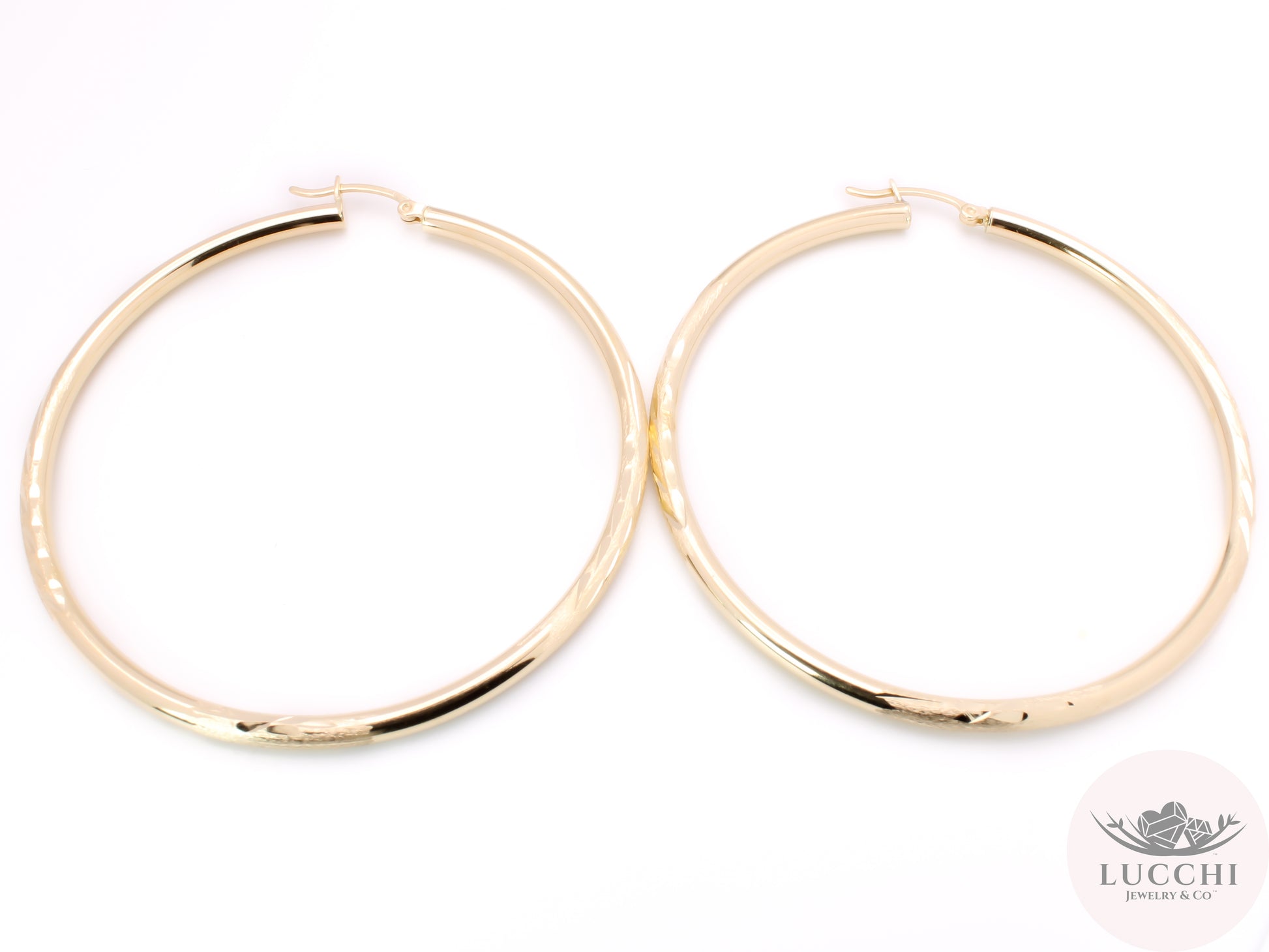 55mm Chevron Classic Hoop Earrings - Glass Blasted - 14k