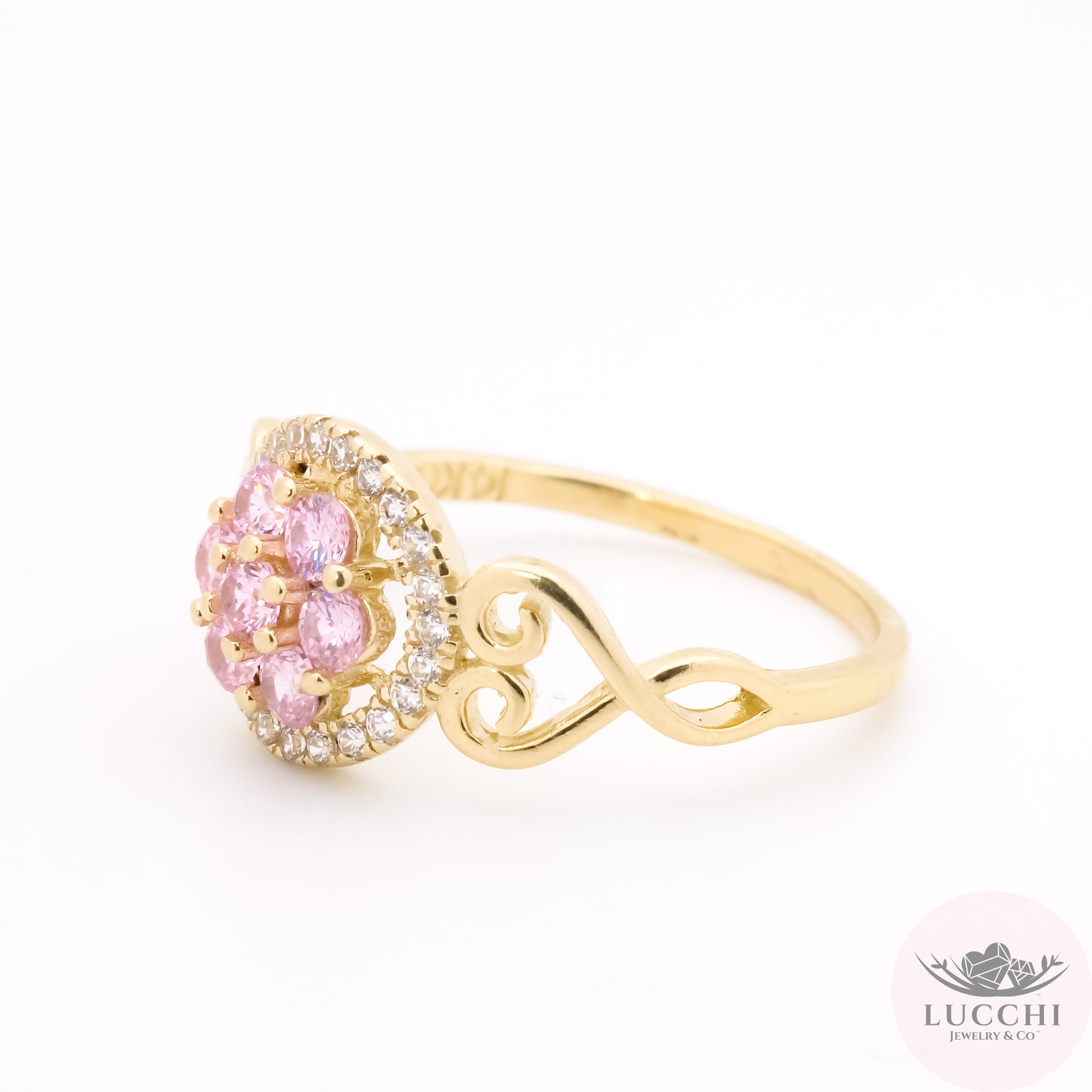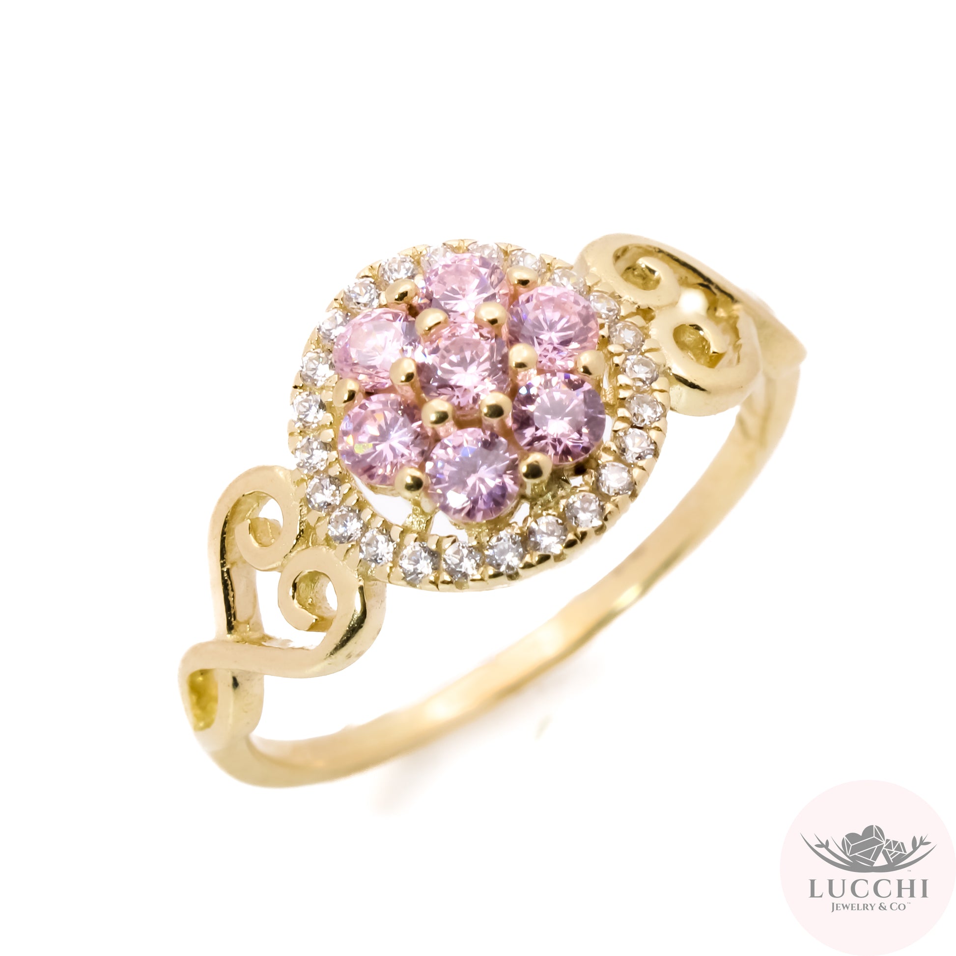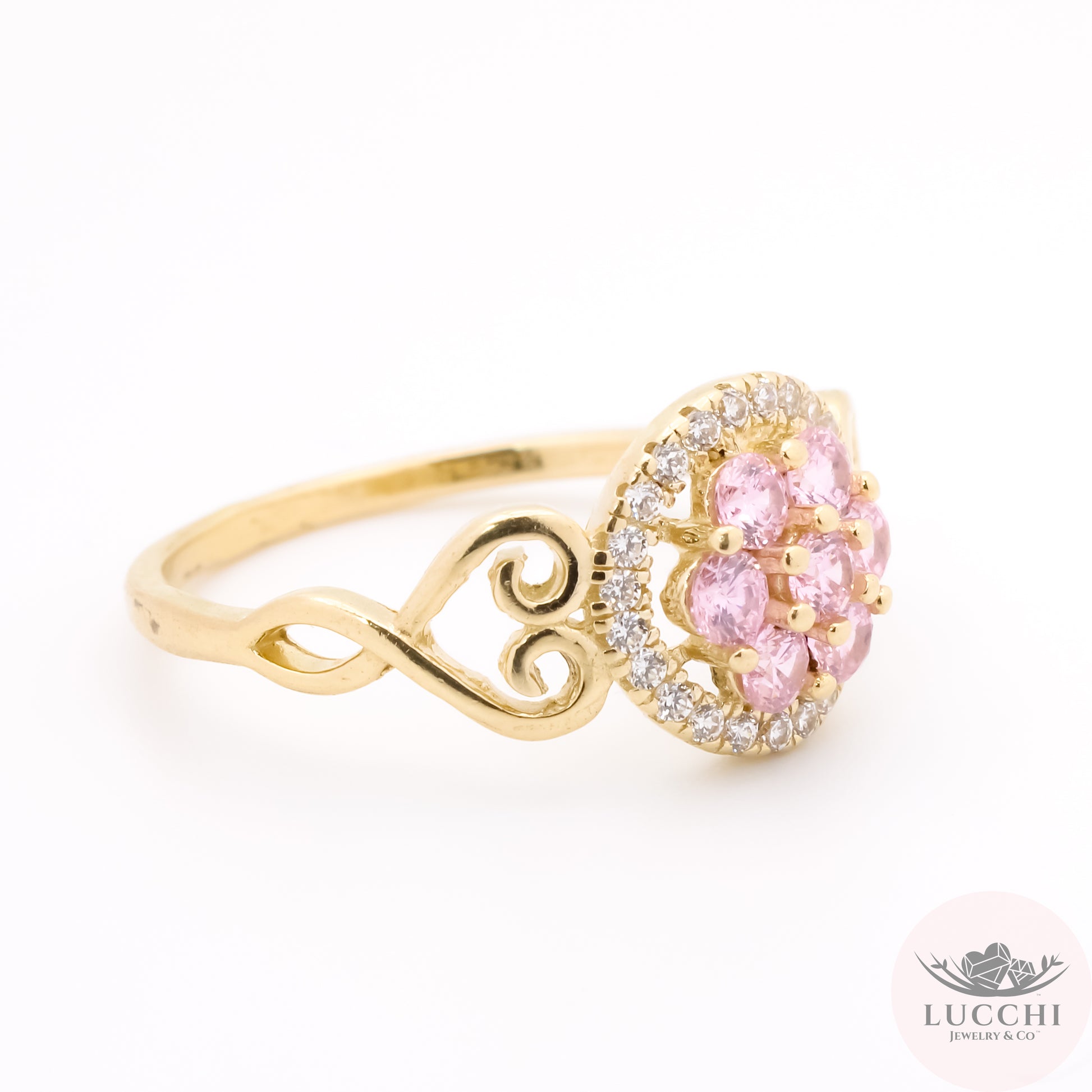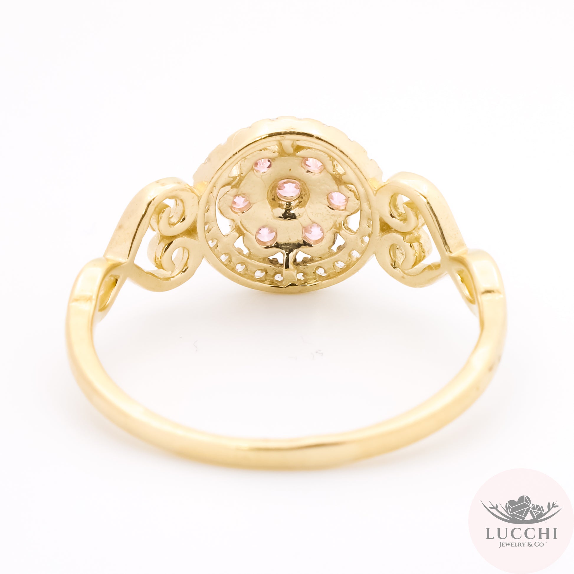 Halo x Filigree Ring Hearts - Baby Pink White - 14k
