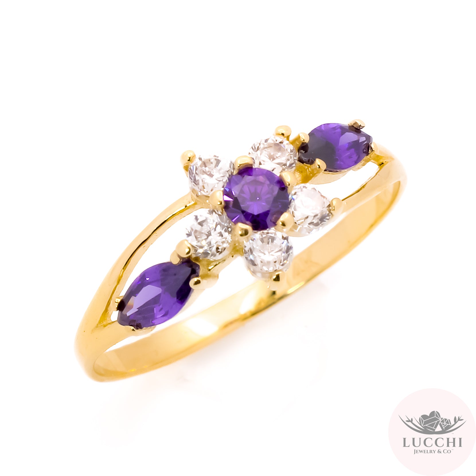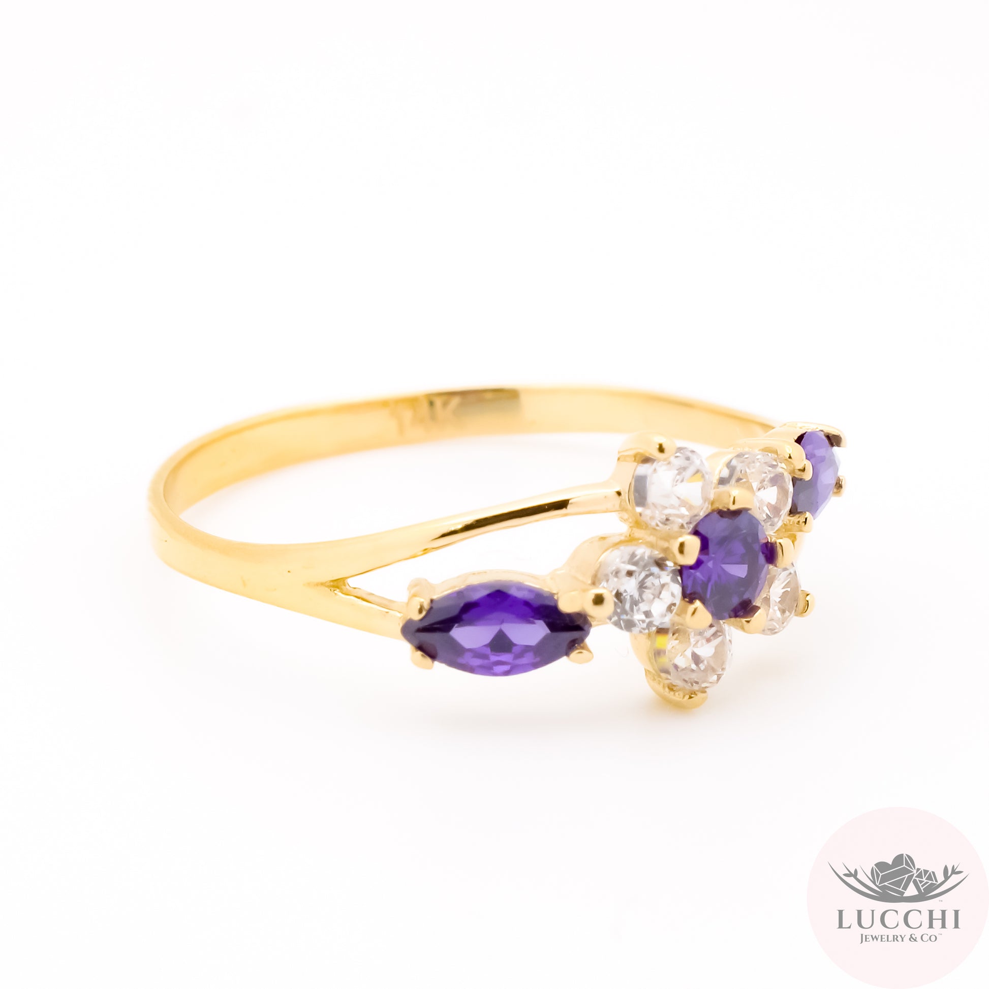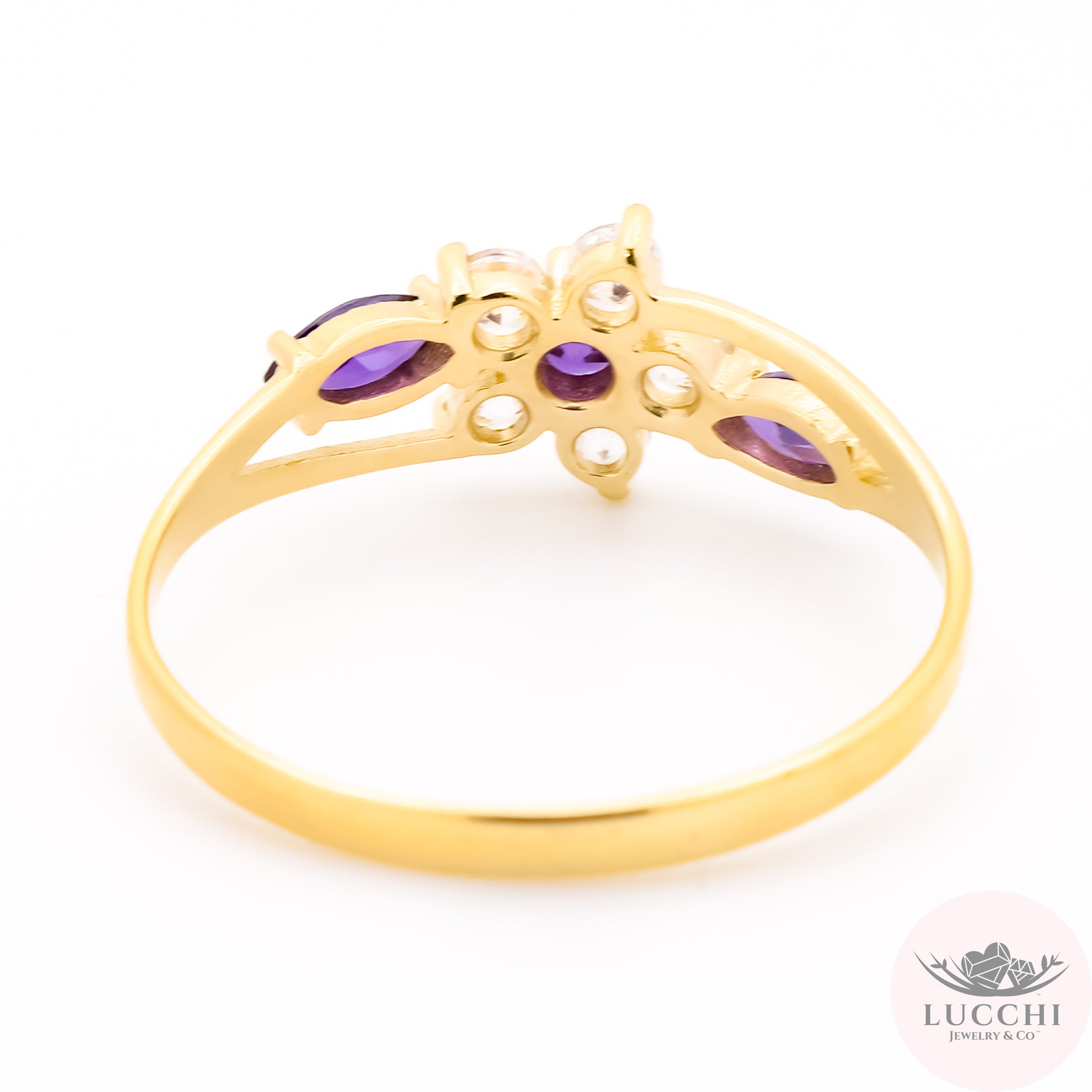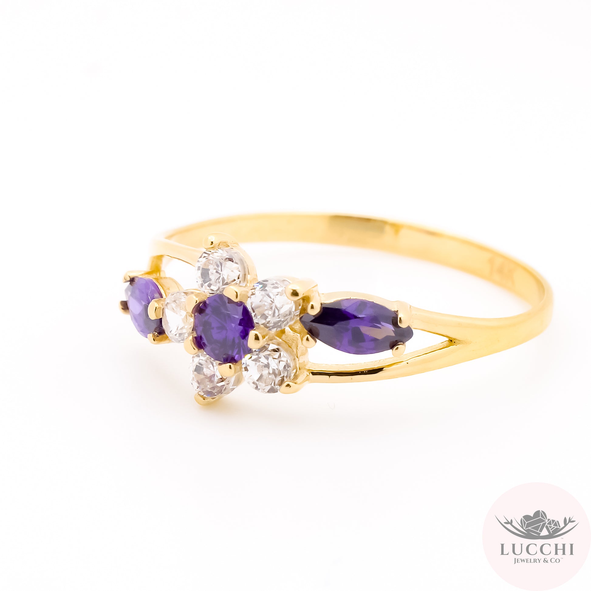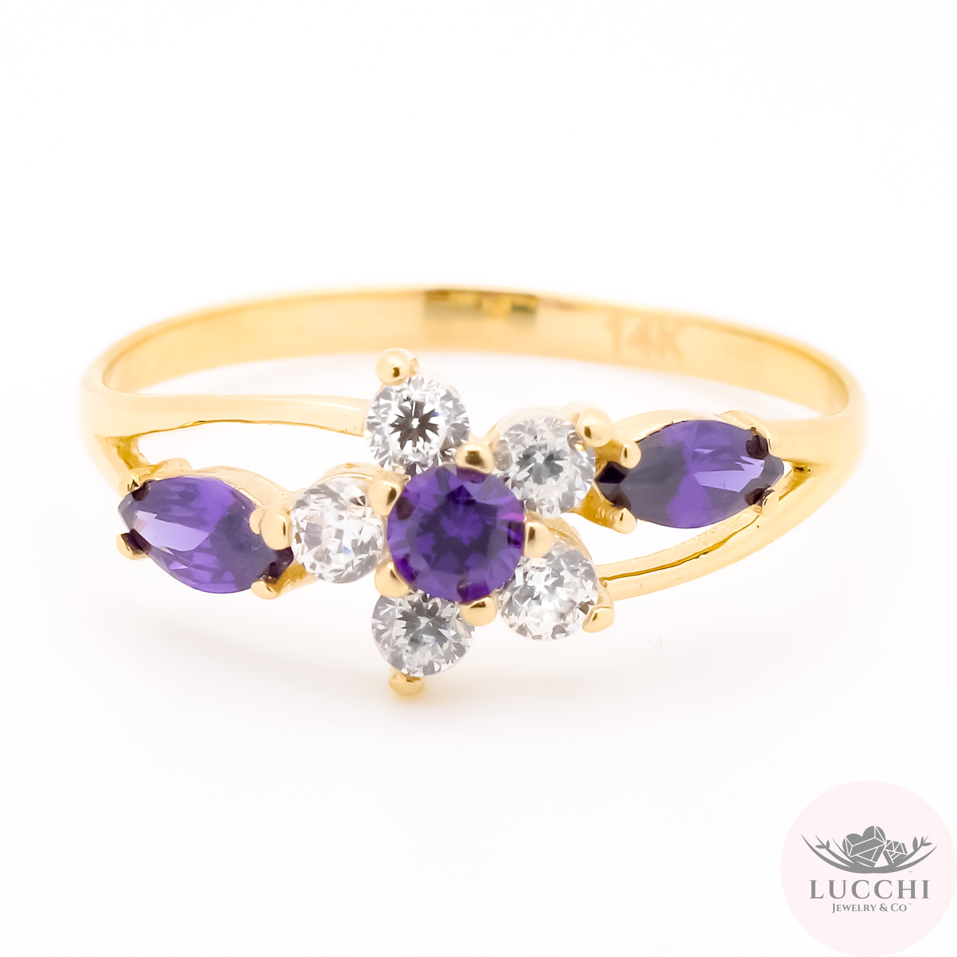 Halo x Floral x Trilogy CZ Ring - Amethyst Purple - 14k