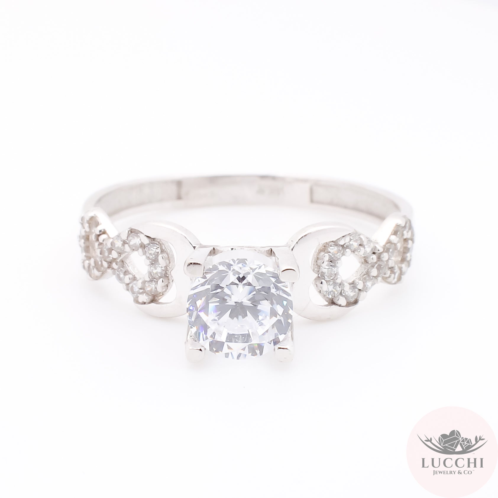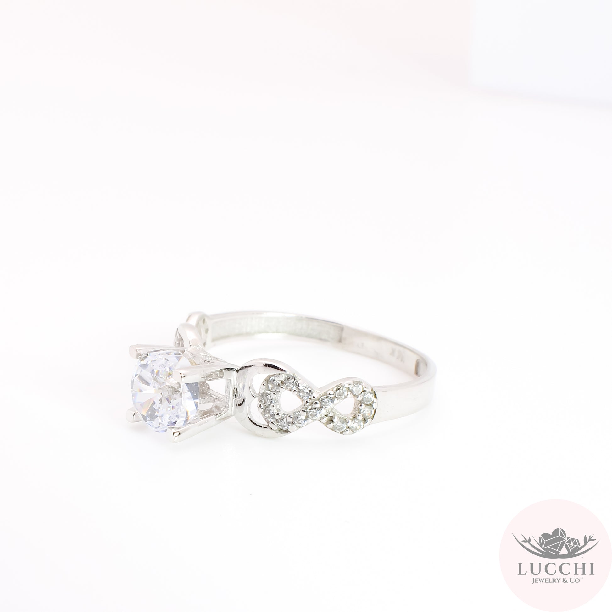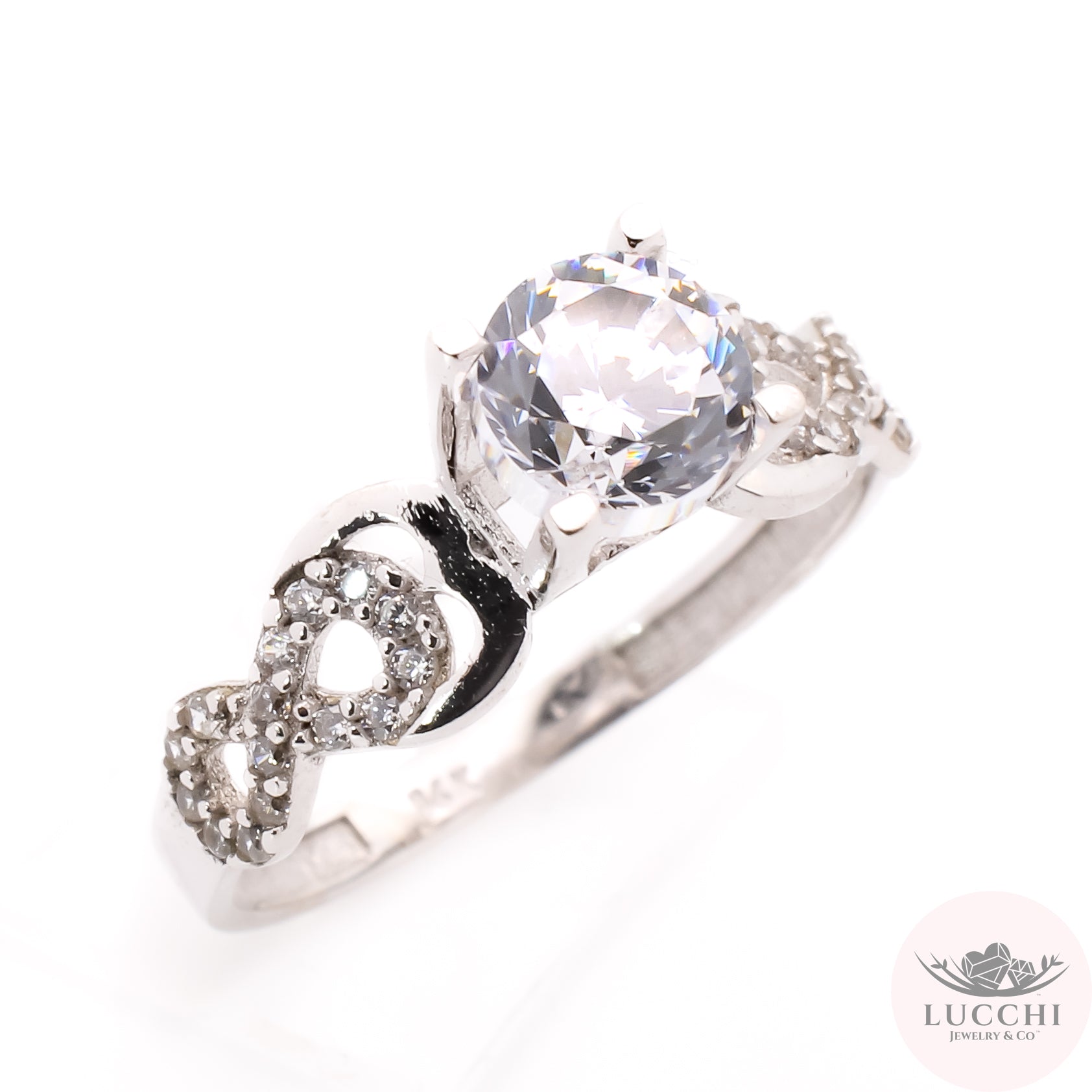 Infinity Solitaire Heart Ring - White - 14k White Gold