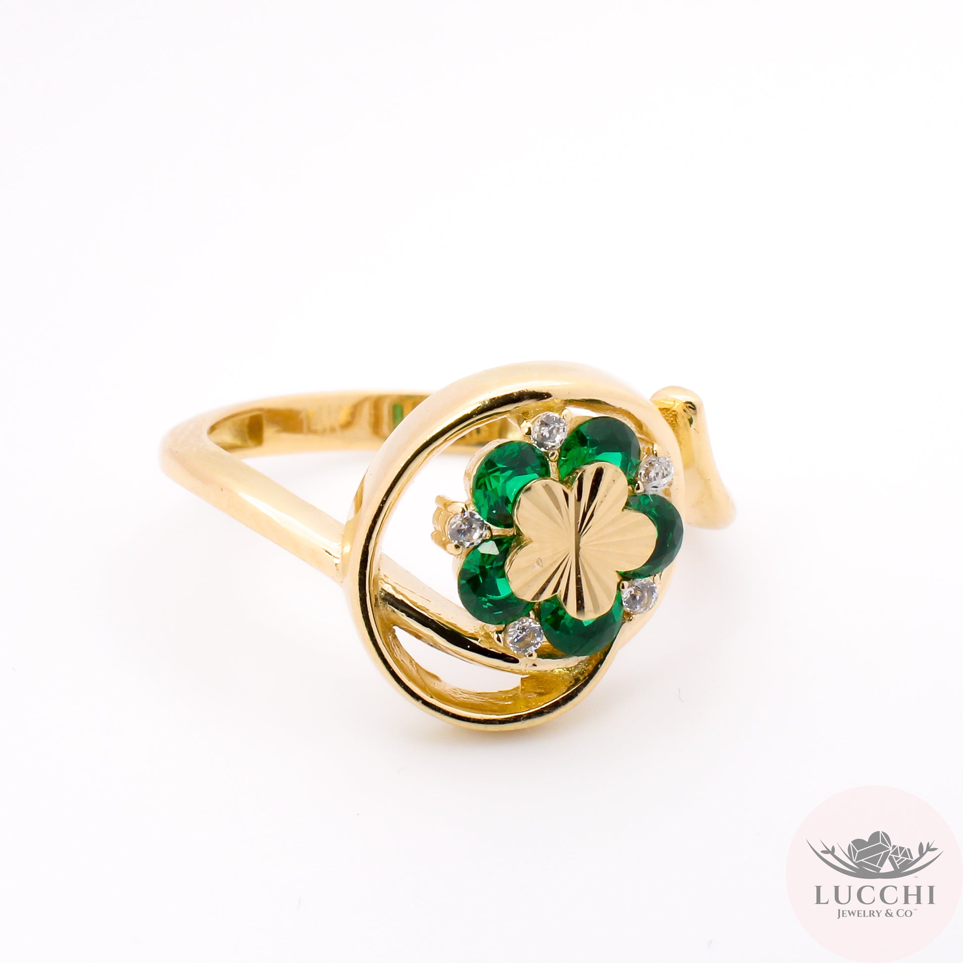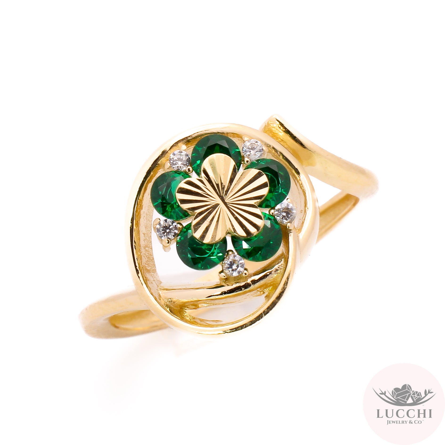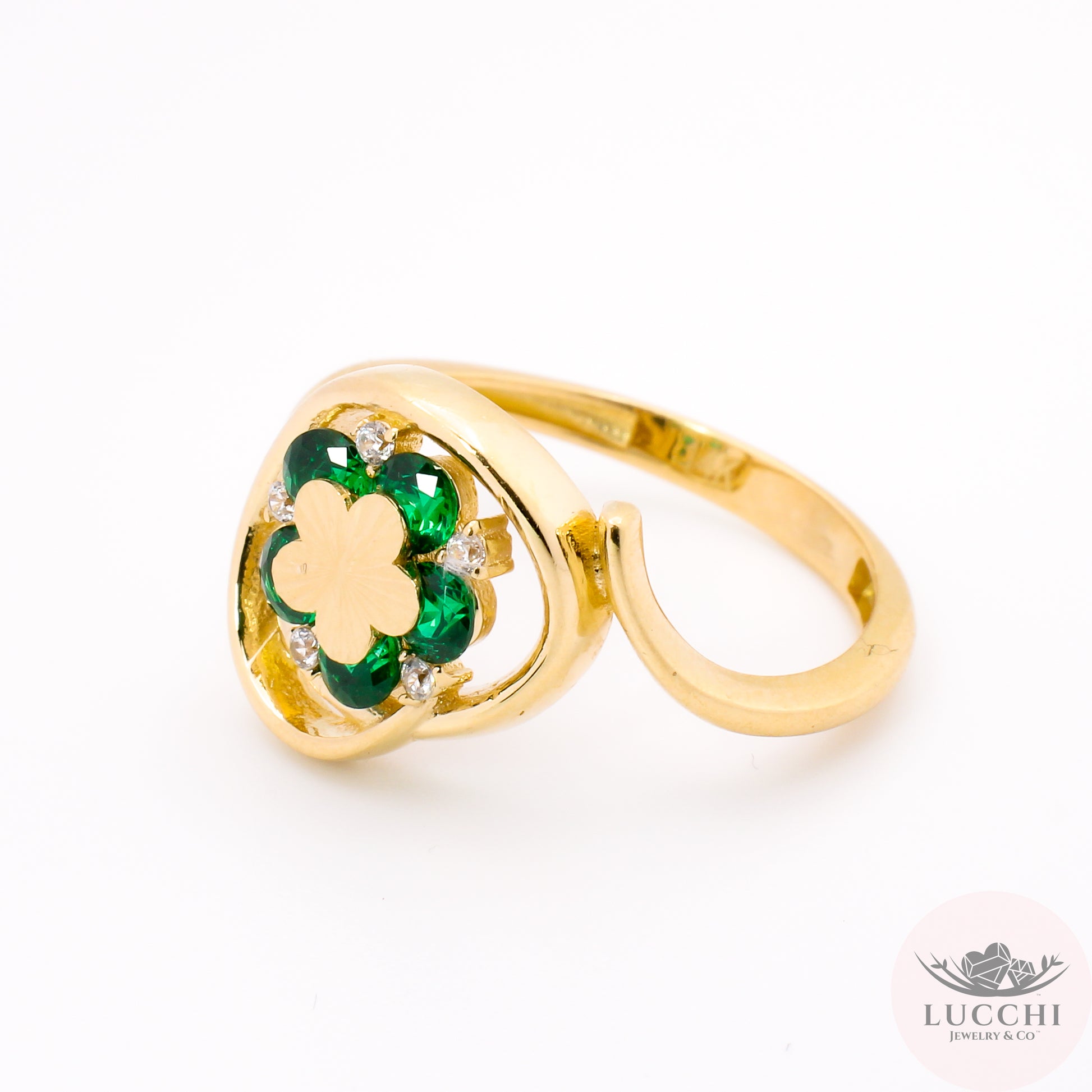 Statement x Floral x Bypass x Halo Ring - Emerald Green - 14k